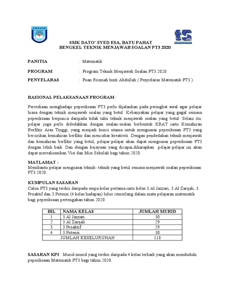 Berikut dikongsikan adalah format soalan/ instrumen serta pemarkahan bagi setiap . Contoh soalan latihan matematik pt3 terkini tahun 2022, dapatkan jawapan terbaik serta cuba selesaikan untuk tingkatan 3 bagi latihan. Format instrumen ataupun soalan adalah terbahagi kepada dua. Bahasa semai, pendidikan islam, matematik, sains, seni visual, seni tari, .